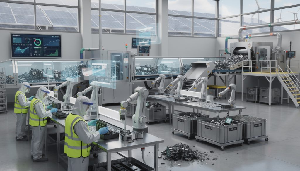 2. Automatisation et intelligence artificielle (IA) : L’intégration d’outils digitaux optimise le tri des batteries et la gestion des flux, réduisant les erreurs et augmentant la rapidité de traitement. L’IA aide aussi à prévoir les quantités à recycler et à ajuster les processus pour limiter les consommations inutiles.